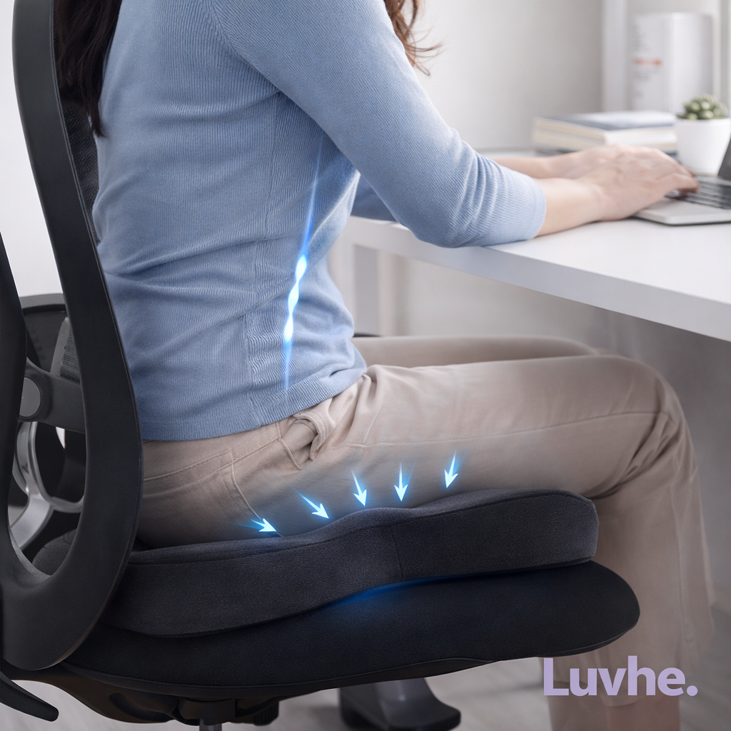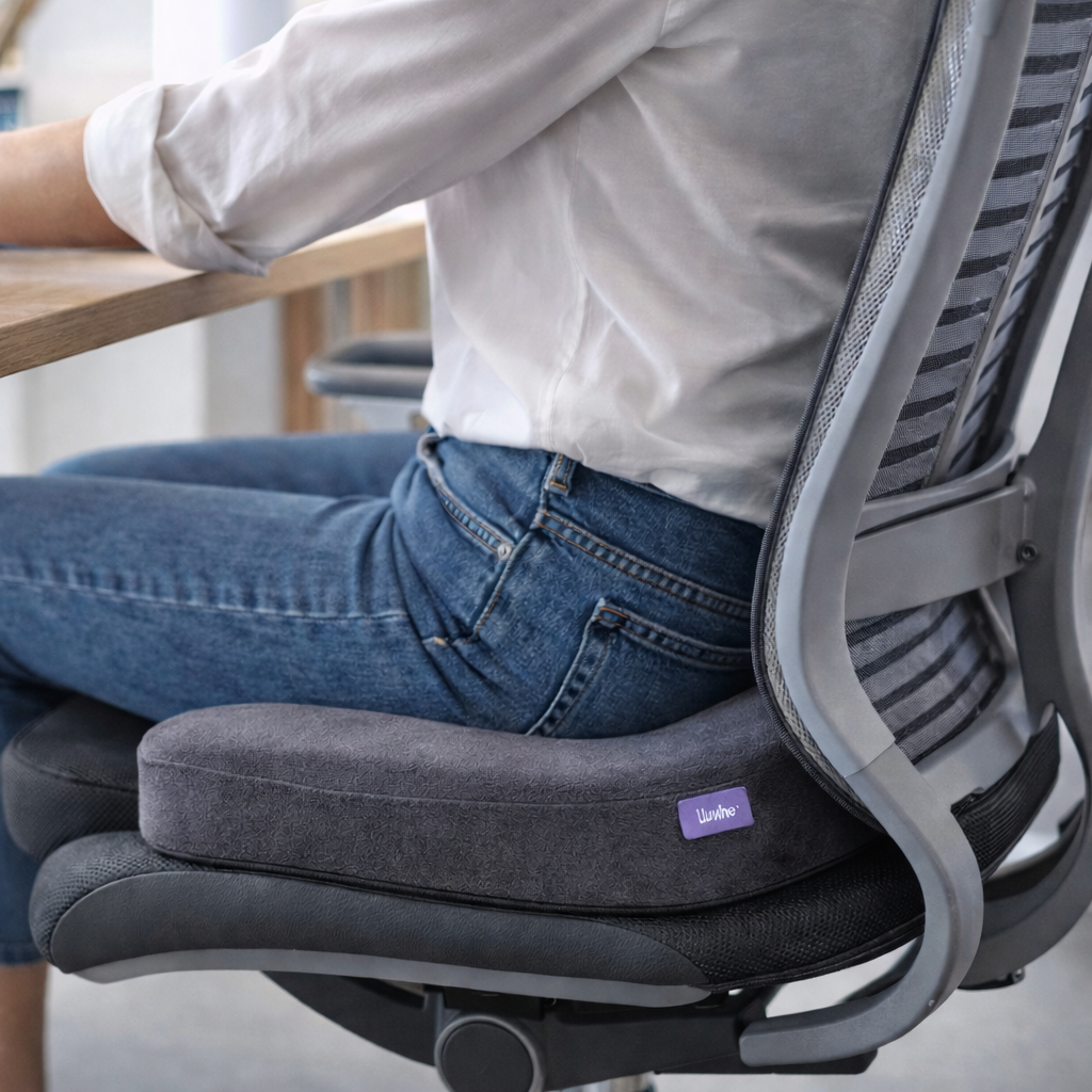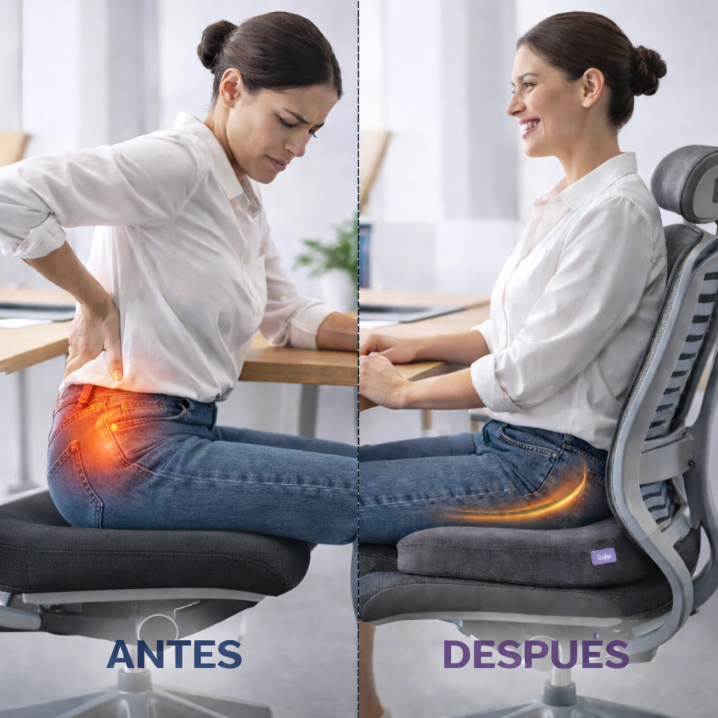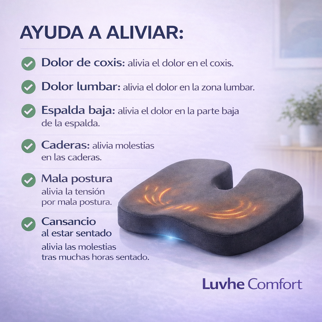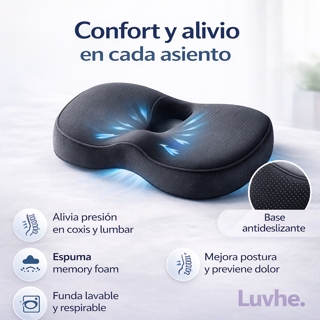 Diseñado para que te sientes mejor y con menos presión: coxís, zona lumbar, caderas y espalda baja. Ideal para oficina, home office y auto.